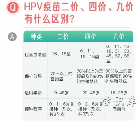 区别二:接种年龄范围不同及接种针次不同,接种年龄:二价:9岁至45岁;四价:20岁至45岁;九价:16岁至26岁。