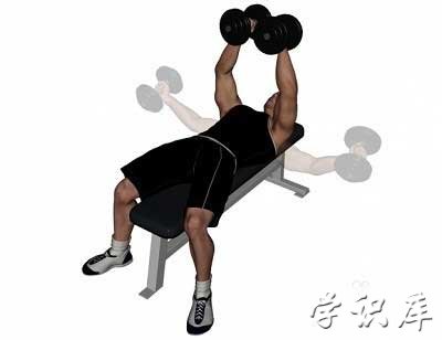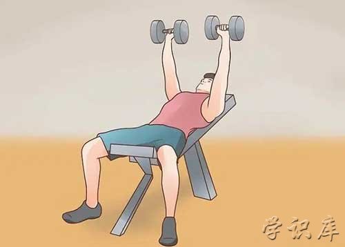 将身体仰卧在45deg;的健身凳上,双手各持哑铃,肘关节略微弯曲,手心相对,放于身体两侧,通过胸肌和手臂的力量将双手伸直,让哑铃处于胸部正上方,再将手臂缓慢恢复到原始位置,每次训练做2组,每组10次动作。