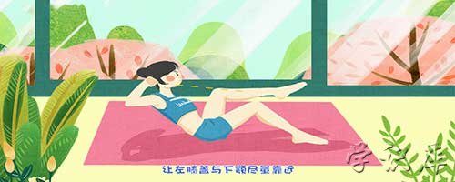 比较常见的卷腹姿势是将身体仰卧在地垫上,双手半握放于耳朵两侧,双腿弯曲,脚掌紧贴地面,利用腹部的力量将上半身向左前方抬起,左腿随之向上抬升,让左膝盖与下颚尽量靠近,再将身体向另一侧抬起即可。