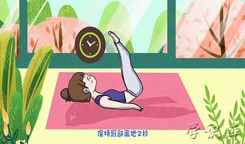 反向卷腹的动作需要让身体仰卧在地垫上,肩部以上保持离地状态,腹部收紧,双手放于身体两侧,双腿伸直并拢直立与地垫呈90deg;,利用腹部的力量将腹部卷起,保持臀部离地2秒,再将身体恢复到双腿直立的姿势。