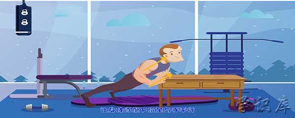 上斜俯卧撑需要借助桌子、沙发等稳固的物体,身体挺直,双手撑于桌子上,保持身体与地面呈45deg;左右斜角,双手比肩略宽,让身体逐渐下沉至与手平行,再缓慢推起身体。