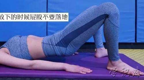 身体平躺,双腿比肩款弯曲,然后利用臀部力量向上顶,即使放下屁 股也不能接触地面,每天可做10组,每一组维持15秒左右时间。