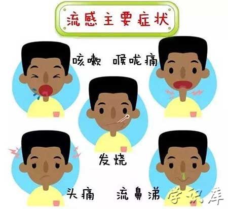 流感症状主要表现有发烧高热、喉咙不舒服、眼睛不舒服、鼻炎症状、乏力、头痛、全身酸痛。流感的潜伏期通常为1~7天,多为2~4天,而呼吸道症状较轻为主要特征,流感与普通感冒是不同的,一般疾病发展是比较快,症状比较严重。