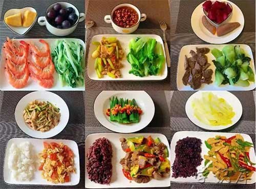 早餐:1、麦皮1碗、脱脂奶1杯;1、苹果3个、清茶1杯;3、红薯粥1小碗、香蕉1个;4、全麦面包2片、脱脂奶1杯。午餐:1、大米粥1碗、炒青菜1份;2、云吞面一碗、苹果1个;4、燕麦粥1份,香蕉1个。晚餐:1、凉拌荞1份、坚果酸奶1杯;2、水煮菜1碗;3、小米粥1碗、香蕉1个。