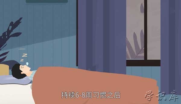 用鼻子吸气4秒钟,憋气7秒,最后再呼气8秒,循环3次后可以感觉到睡意,有些人刚开始并没有睡意,但是只要持续6~8周的时间,可以迅速的在一分钟入睡。调整控制呼吸是能够有效放松压力的,并且将思想集中在呼吸上面也会更加不容易胡思乱想起到快速入睡的作用。调整控制呼吸的方法是比较简单的,深深的慢慢的吸一口气,同时将肚子鼓起来,然后再慢慢吐气将肚子彻底收紧。