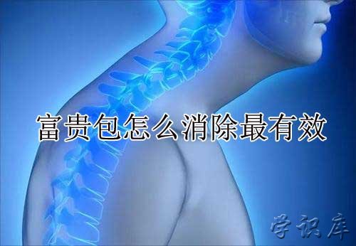 颈椎包又叫富贵包,就是在颈椎后方脂肪堆积而成的,看上去是一个大的包块,实际上它里面的成分是增生的脂肪组织,一般是良性的,很少有这个转变成恶性的,所以它对身体没有什么妨害,但是影响外观影响外形。怎么消除富贵包最有效呢,下面给出最实际介绍。