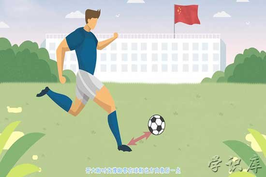 开大脚时支撑脚要在球射出方向靠后一点,能够使球体在空中待更久,同时也能使球体踢的更远,另外脚部多个部位都可以踢球,例如正脚背、内脚背、外脚背,每个部分提出来的效果不同。