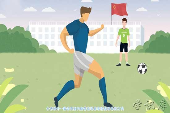 开大脚时会用到正脚背、外脚背,长传球时一般会用到内脚背,这样容易控制球体的方向,还可以踢出弧线。除了脚部使劲之外,惯用脚部的反向胳膊要先上摆,在射球的瞬间胳膊往下压,这样可以将球踢得更远。