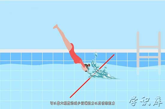 入水时水花越少越好,身体的其他部分要穿过手臂在水中钻出的洞,可以最大程度的减少前端阻力以及波浪阻力,溅起的水花越多说明运动员的跳水效果越差。