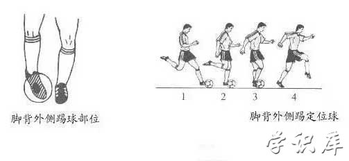 踢定位球时需要直线助跑,随着身体与球的接近,眼睛要注视移动的球体,支撑脚一般在球后沿侧方10~15厘米处,脚尖与出球的方向保持一致,膝关节微屈,准备踢球时,大腿带动小腿向后前方摆动,击球瞬间,脚背绷直,脚腕压紧。