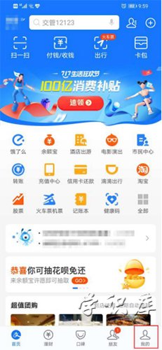 1、打开手机支付宝软件,登录到个人账号,在支付宝界面的右下方找到我的选项,点击进入;