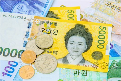 韩元硬币总共有1韩元,5韩元,10韩元,50韩元,100韩元,500韩元,6个币值。