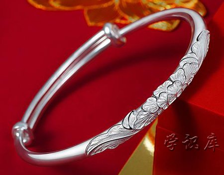 千足银是这几年刚突破的一种银饰生产法,这种银成色是目前市场上最纯的。由于是99.9%的银,所以,从外观上很容易识别,就是亮银的本色,这种银材质,由于银本身的金属特性,使得99.9%的银比较软,不适合用来制作仿白金或K金镶嵌类的饰品,但用来制造素银类首饰则有银饰品特有的质感。