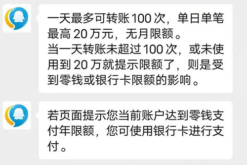 题外话:微信零钱限额包括转账、支付、红包等等,而微信零钱年度限额以年为单位,额度几乎可以满足所有普通用户的需求,如果微信转账出现限额提示,可以直接切换至银行卡进行支付,对于大多数用户来说,以月为单位,超过50万的额度上限,足够使用了。