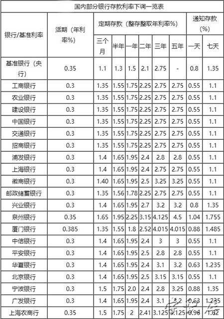 2022年银行存款利率表一览表