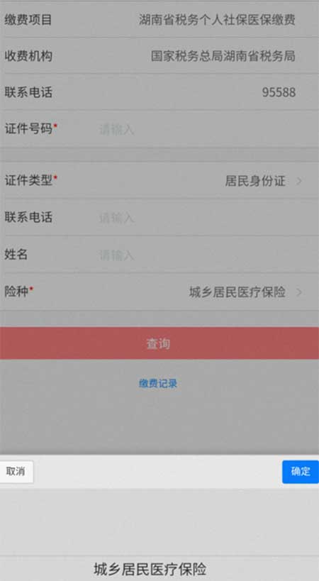进入“社保缴费”后,选择需要缴纳的医保类型,以湖南的城乡居民医保缴纳为例,输入联系人姓名和身份证号码,按操作要求缴纳。