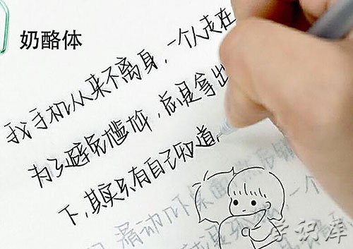这种字体给我们最直观的感受就是Q萌和可爱,深受中小学生的喜爱,甚至有很多孩子为了写好“奶酪体”在同学之间炫耀一把,还会去购物网站买一本“奶酪体字帖”回来勤加苦练。