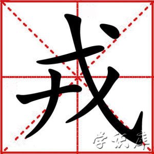“戎”始见于商代甲骨文,甲骨文由“戈”和一个十字符号构成,“戈”本义是古兵器;十字符号是“甲”字,意为铠甲,用于防御。也有的学者提出了不同看法,他们提出“戎”下的“十”字是“毌(guàn)”字的简化写法,模拟的是盾牌。