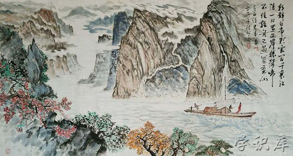 清晨告别五彩云霞映照中的白帝城,千里之遥的江陵,一天就可以到达。