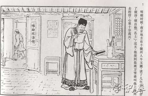 第二十一回:牛浦郎在庵里读书,认识了老和尚,趁老和尚不在时,偷看了牛布衣留下的个人诗集,因是同姓,就想冒名牛布衣,因此改名牛浦,字布衣,自刻了手章。卜老爹有个外甥女,母亲已亡,父亲常年在外经商,与牛老爹商议嫁与了牛浦郎。