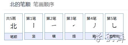 北的笔顺是竖、横、提、撇、竖弯钩。北组词有:北苑、北唐、北疆、拱北、北郊、北林等。
