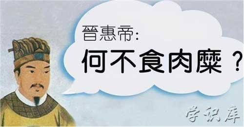 何不食肉糜是晋惠帝执政时期的一个名词,指对事物没有全面认知,也指没有亲身经历过的人对别人的处境或行为妄加评论或建议,在古代常被用来当做帝王昏庸的代名词。晋惠帝在后世的印象中一直都是公认的白痴皇帝,尤其是他那句“何不食肉糜?”便是最为重要的证据之一,“何不食肉糜”出自《晋书·惠帝纪》。