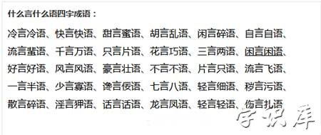 12、闲言赘语、闲言冷语、尖言尖语、轻言软语、闲言长语;