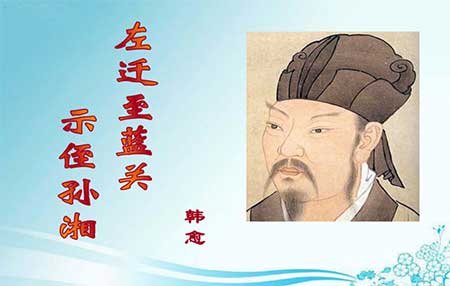 潮州治所距离当时的京师长安有千里之遥。韩愈只身一人,仓促上路,走到蓝田关口时,他的妻儿还没有跟上来,只有他的侄孙子跟了上来,所以他写下这首诗。