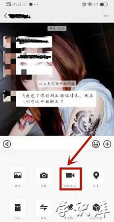 5. 设置完成之后,我们就可以返回微信界面,然后找好友,进入到聊天界面之后,点击右下角加号,然后在打开的菜单中点击视频通话选项。