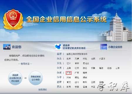 1.选择企业登记机关所在地区;2.输入企业名称或注册号;3.查询详细信息。