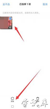 这里将会保存您在30天内删除的照片,如果您想要恢复只需要勾选需要恢复的照片,轻触【恢复】即可。