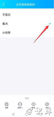 进入页面,点击主页底部导航栏设置,勾选看点,这样小世界就关闭了。