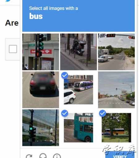 5、回答图中的验证,比如这个,找出图中的bus,选好之后点击VERIFY(确定)。