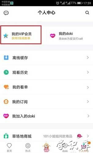2.找到并点击“我的vip会员”选项,点击昵称下方的“管理自动续费”进入。