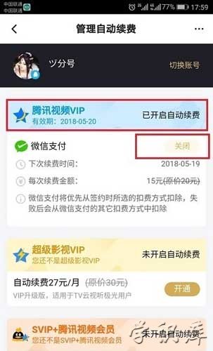 腾讯会员取消自动续费方法