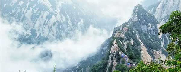 诗句“巍巍狼牙山,苍茫云海间。青峰拔地起,只手欲擎天。”写出了华山的险峻,由于华山太险,所以唐代以前很少有人登临。历代君王祭西岳,都是在山下西岳庙中举行大典。