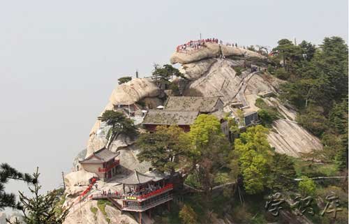 华山的主要景点多达210余处,有凌空架设的长空栈道,三面临空的鹞子翻身,以及在峭壁绝崖上凿出来的千尺幢、百尺峡、老君犁沟等。