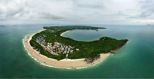 涠洲岛在广西壮族自治区北海市涠洲镇。涠洲岛占地面积为24.74平方千米,在北海市的南部,雷州半岛西边,岛形近似于圆形,东和西宽六公里,南北长六点五公里,在地质上,地表隆起,涠洲岛的南半部以海蚀地貌为主,海滩以宽阔平坦的沙质海滩为主。