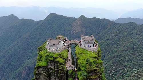 梵净山位于贵州省铜仁市江口县杭瑞高速附近,是一座避暑名山和佛教名山。梵净山拥有丰富的野生动植物资源,有黔金丝猴、珙桐等珍稀物种,梵净山有三座山顶,从印江方向入,沿着棉絮岭看看万米睡佛,有一览众山小的感觉。梵净山被誉为贵州的“天空之城”。远远看上去就像是一只竖立的蘑菇石,运气好的话还能看到山顶佛光幻影的奇异景观。梵净山有东门和西门,西门的沿途风景也很美,但是没有索道需要步行四五个小时更适合登山爱好者,如果从东门则是乘坐观光车坐20分钟左右,然后再坐索道半个小时左右就能到达山顶,还可以在普度广场祈福一年平安顺利。