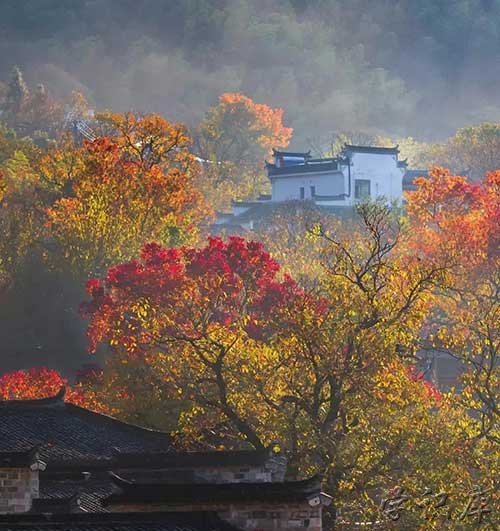 很少人知晓的村子,但它却在浙江临安美成了金秋的童话。秋景的映衬之下,特色的当地房屋,也在阳光下变得更有古意。