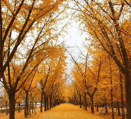 这是一条3千米长的道路,被银杏铺满,人们都称赞它是最美银杏路的“银杏时光隧道”。