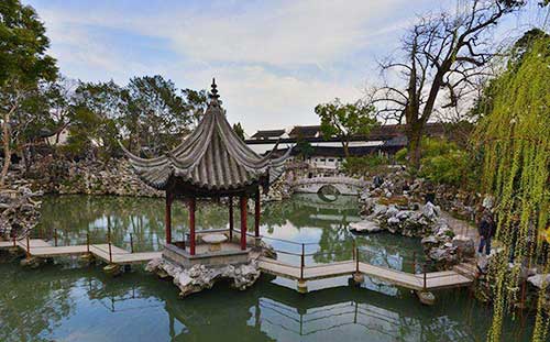 狮子林:始建于元代至正二年,是中国古典私家园林建筑的代表之一。属于苏州四大名园之一。狮子林同时又是世界文化遗产、全国重点文物保护单位。由于林园几经兴衰变化,寺、园、宅分而又合,传统造园手法与佛教思想相互融合,以及近代贝氏家族把西洋造园手法和家祠引入园中,使其成为融禅宗之理、园林之乐于一体的寺庙园林。