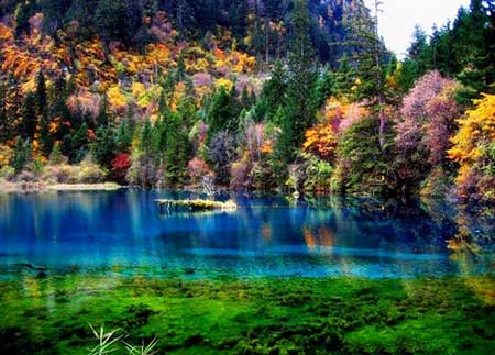 3、秋季(9-10月):九寨沟的秋天被誉为最美的季节,此时的树叶开始变黄、变红,色彩斑斓,美不胜收。尤其是十月中下旬,树叶红黄交织,倒映在蓝色的湖水中,景色如画。此时正是观赏九寨沟彩林的好时机,游客众多,旅游价格也较高。