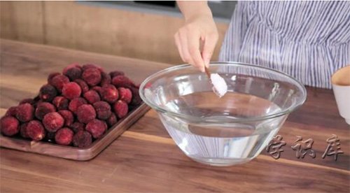 制作杨梅酒首先的步骤就是清洗杨梅,做杨梅酒一定要选择新鲜的,好的杨梅,这样酿制出来的味道才会有很好的口感,把杨梅放在盐水中浸泡半小时后,取出用清水冲洗。