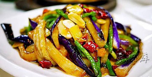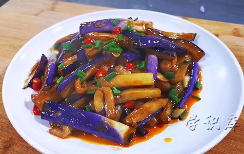 2、鱼香茄子是将腌制好的茄子放入油锅中翻炒后盛出,然后再在锅中用油、葱姜末、豆瓣酱等将茄子翻炒,然后倒入酱汁收汁就可以了。