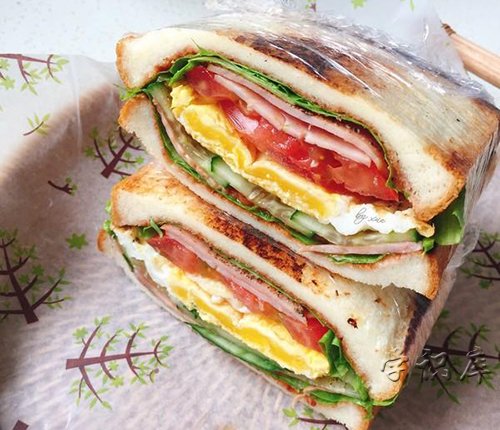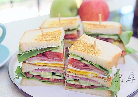 可能我们平时吃的三明治并不会包括这里面所有的食材,但是一般吐司片是必须的,鸡蛋也是必须的,其他的可能会选择两三样夹在里面。