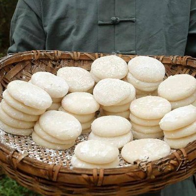 糍粑 ,汉族小吃,流行于中国南方地区。 贵州,四川,湖南,福建,湖北等省市都有,又以武夷山最为盛行。糍粑 是以糯米为主料,清浸泡后搁蒸笼里蒸熟,再迅速放在石舀里舂至绵软柔韧,趁热将饭泥制作成可大可小的团状,搁芝麻炒香磨粉拌白砂糖(或是黄豆炒香磨粉拌白砂糖)的盘里滚动,即可取食。口感香甜。现街头商贩多用脚踩三轮车叫卖,饭泥用保温性能好的特制铁桶装放,摇动把手,饭泥从圆孔钻出。大凡有喜事,当地人都要做红糖拌糍粑招待客人,以表吉利。