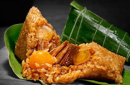 粽子,是中国汉族传统节庆食物之一。主要材料是糯米、馅料,用箬叶(或柊叶、簕古子叶等)包裹而成,形状多样,主要有尖角状、四角状等。粽子由来久远,最初是用来祭祀祖先神灵的贡品。南北叫法不同,北方产黍,用黍米做粽,角状,古时候在北方称“角黍”。由于各地饮食习惯的不同,粽子形成了南北风味;从口味上分,粽子有咸粽和甜粽两大类。