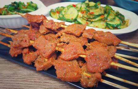 烤肉的腌制方法是先把猪肉切成片状并和切碎的洋葱、大蒜、葱搅拌均匀,然后往猪肉内倒入花椒粉、食盐、五香粉、蚝油、淀粉,这里淀粉可以让猪肉的口感更鲜嫩,接着把猪肉密封起来腌制一个小时以上就可以了。