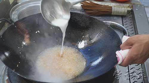 6、煮至汤汁沸腾后,勾入少许水淀粉,熬至汤汁浓郁粘稠时,加入葱油3克,再次搅拌化开,就可以关火起锅。